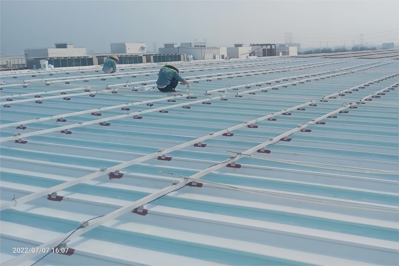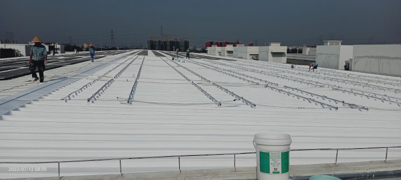 本屋面的特點及可以給大家借鑒的地方,在于:彩鋼屋面已安裝好光伏板,后續再做防水維修及隔熱節能工作,光伏板再復原。