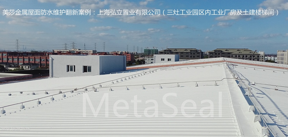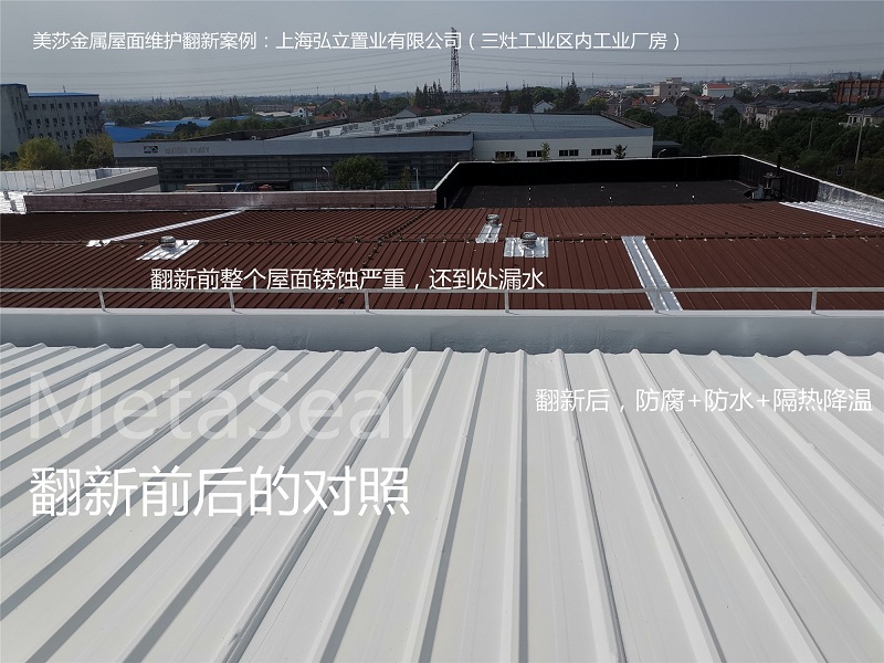 上海弘立置業有限公司,是涉及房產、物業、倉儲等業務的綜合性服務集團公司。其位于浦東新區宣橋三灶工業園區的標準化廠房,舊金屬屋面已大面積銹蝕,面臨著是否更換屋面板還是維修維護的艱難選擇。 經專業人士推薦,最終選用MetaSeal金屬屋面翻新體系,對2棟金屬屋面進行了維護翻新,以及樓梯間土建屋面+外墻的防水補漏維護。整個施工期間,對廠區內的生產經營沒有任何影響,翻新維護成本僅是更換屋面板的2/3,又能長壽命(正常使用10年以上),且后續再維護的成本僅僅為此次翻新的1/2。一個好的維修維護方案,幫客戶解決了難題。