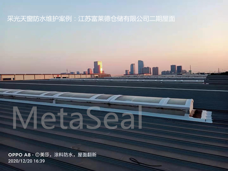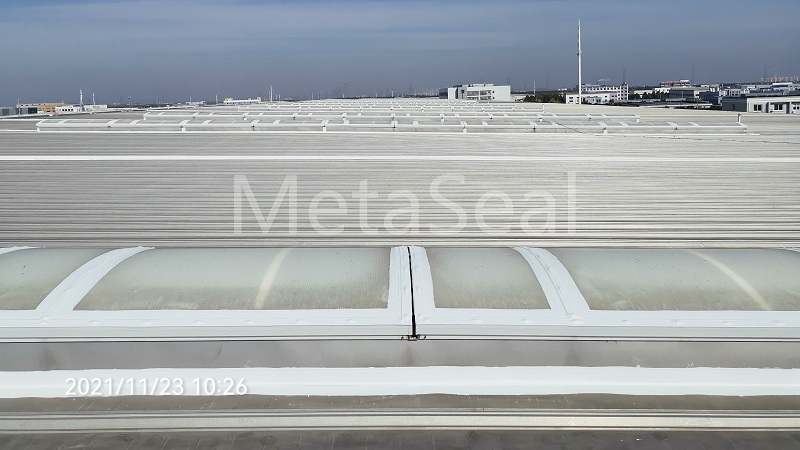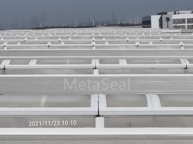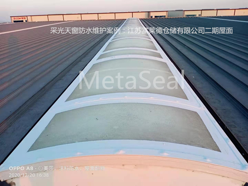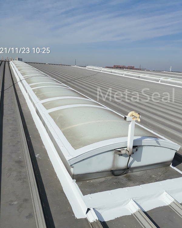 前幾年,ESR集團下的上海東合倉儲有限公司,也曾對排煙天窗進行過防水維修(采用MetaSeal美莎金屬屋面防水),效果整體不錯。所以,2020年12月,富萊德二期項目,也對先前報修漏水的15個長條排煙天窗,采用美莎防水體系進行了維護,效果不錯。