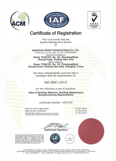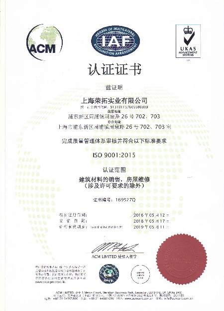 由于美莎防水/上海榮拓實業有限公司 ISO質量管理的理念和要求從上到下,已灌輸于每一個美莎防水員工的心里,體現在每一項工作中。所以,復審換版工作進展較順利,各類單證都準備齊全,即使有些小缺陷,在咨詢公司魏老師的指導下,我們進行了完善,達到了ISO9001質量體系管理的要求和預期目標。