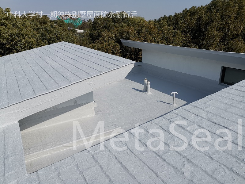 而中科大學村二期、三期為聯排別墅,其土建平屋面,都采用傳統的SBS瀝青防水卷材,3-5年后瀝青卷材都出現了不同程度的老化,漏水情況比較普遍。后經采用美莎土建屋面防水體系(含聚酯布)翻新后,整體煥然一新,一勞永逸地解決了屋面滲漏水的問題。
